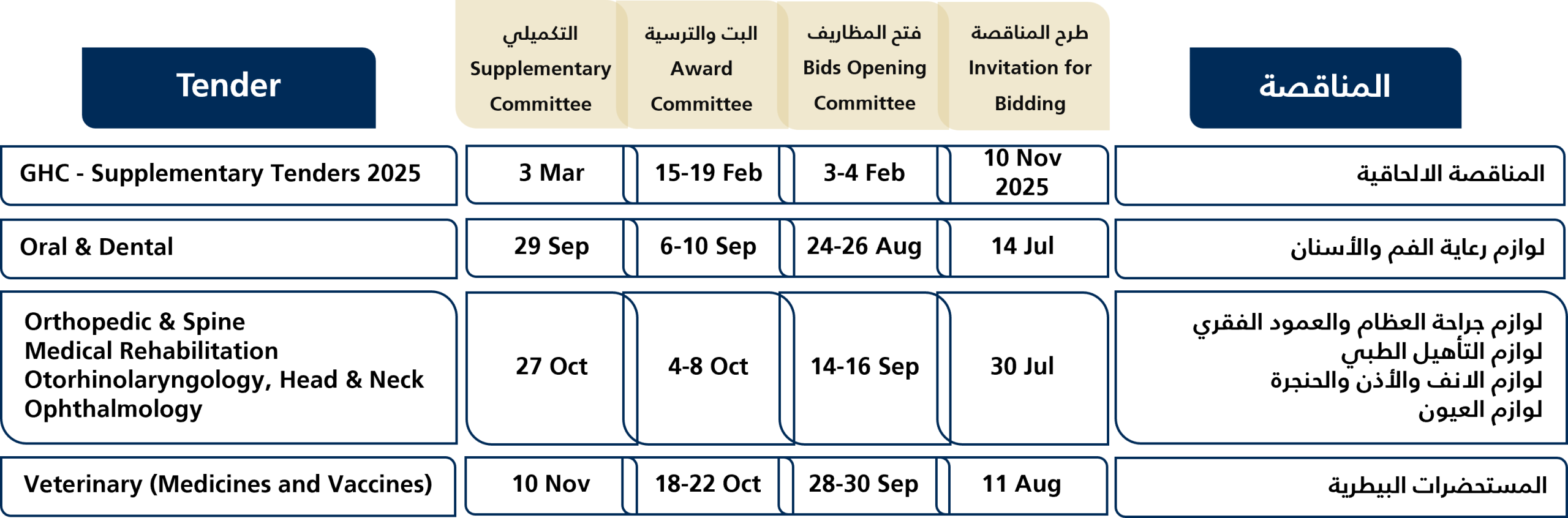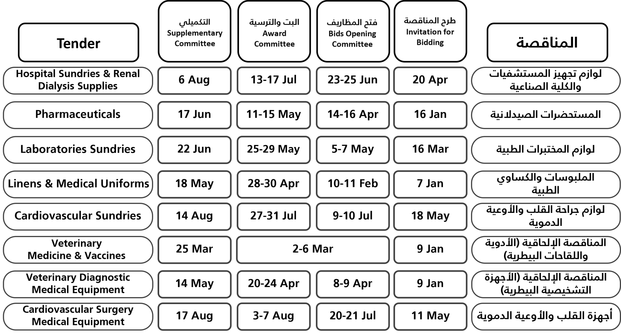 Speedy completion of the process of issuing and awarding tenders by relying on an advanced program that was specially designed for unified procurement tenders and connects Member States electronically, as well as linking manufacturing companies registered with the Health Council.