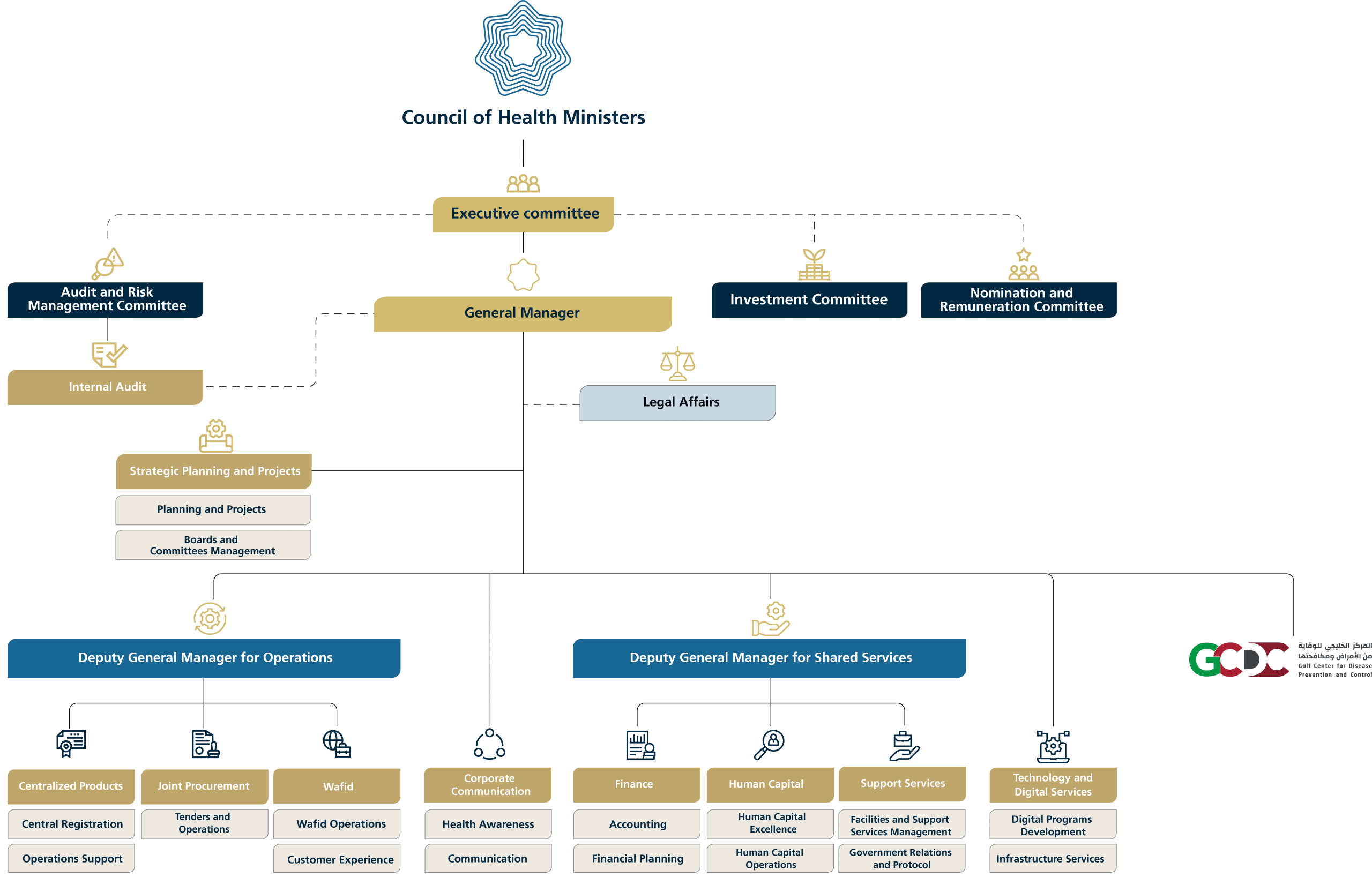 The Health Council of the Cooperation Council states with the executive body carries out its work from its headquarters in the city of Riyadh in the Kingdom of Saudi Arabia, where it includes a general director and a cadre composed of technical, financial and administrative staff who in turn contribute to carrying out the work of the council and achieving its strategy as represented by the director general in the meetings of the council, and he informs The members of the Executive Board set the agenda two weeks before the date of the meeting. The agenda of emergency meetings is limited to urgent issues that require presentation to the Board. The Board prepares reports and memorandums related to each topic separately, accompanied by the recommendations of the Executive Committee in this regard.